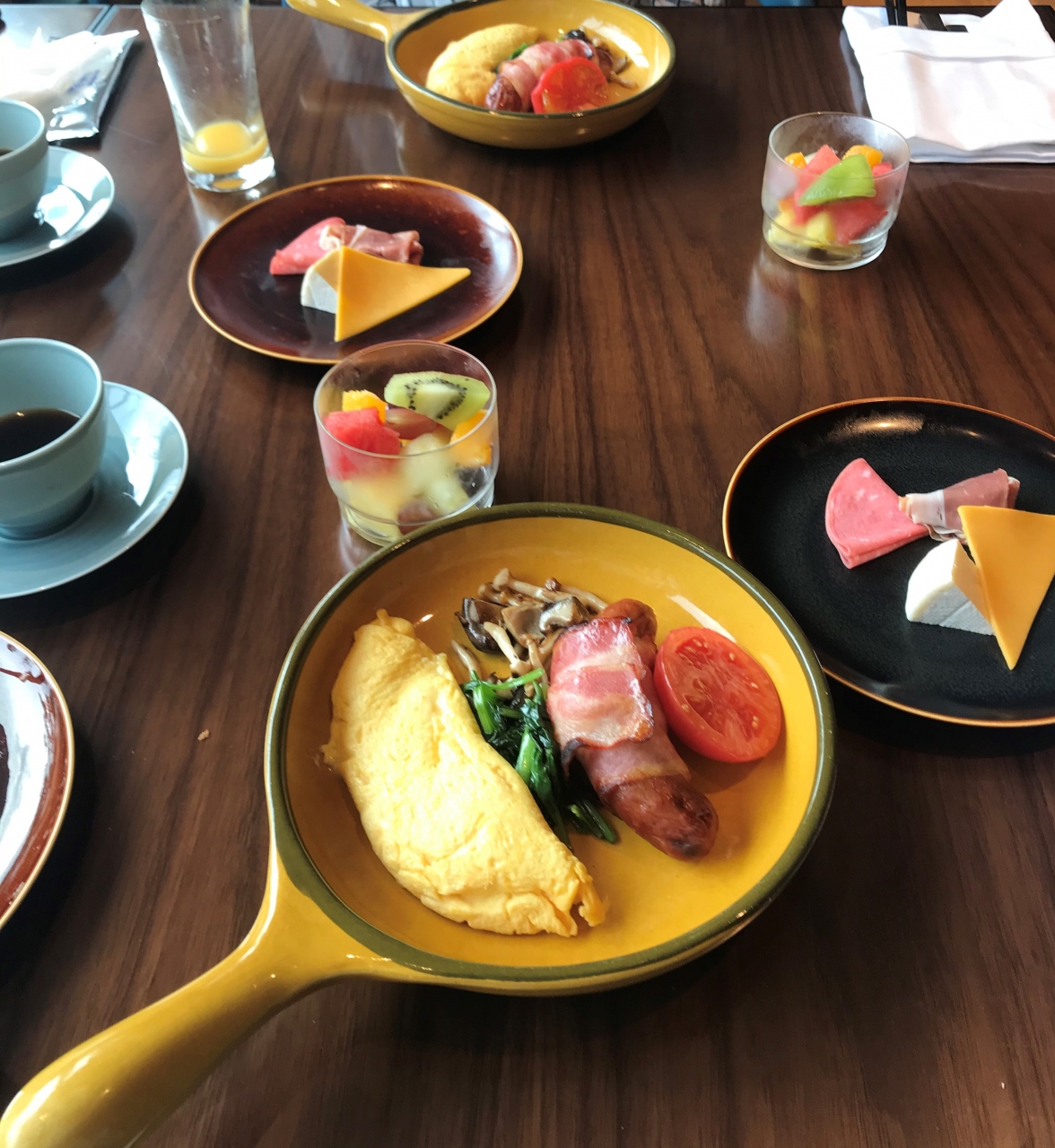 朝食は、和食と洋食でそれぞれ2種ずつの4種類から選択できたので、洋食のリバーサイドセットにしました。オムレツなどのセットで、その他、パンのみビュッフェ形式でいただけます。自分が食べたいものを伝えて、スタッフが取ってくれるシステムでした。- 旅行時期
