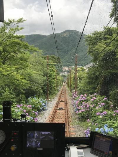 強羅から早雲山まで往復利用しました。7月上旬でしたが、まだ紫陽花が見頃で、車窓からは綺麗な紫陽花を見ることができました。