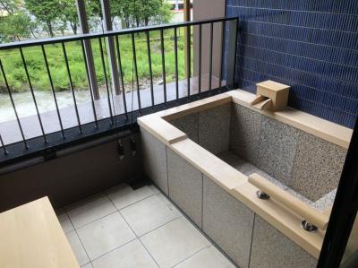 全室温泉付きなので、部屋でリラックスできます。部屋のタイプは、山側と川側があり、私はリバーサイドの部屋に宿泊しました。目の前には早川が流れていて、開放感のある眺めで良かったです。