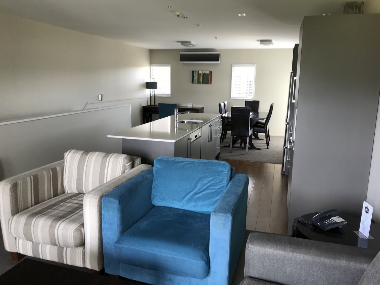 二階建てで、下の階にバスルームとベッドルーム、上の階にキッチンやリビングがあり、普通の一軒家のようになっていました。調理器具や洗濯機も揃っているので、長期滞在も出来そうです。レイクビューの部屋だったので、部屋からもテカポ湖が見え、夜は綺麗な星空が見えました。