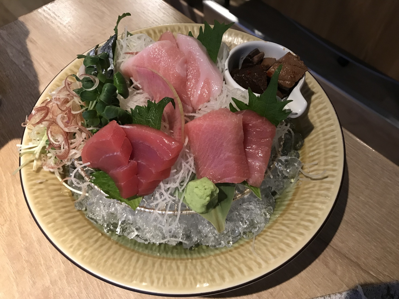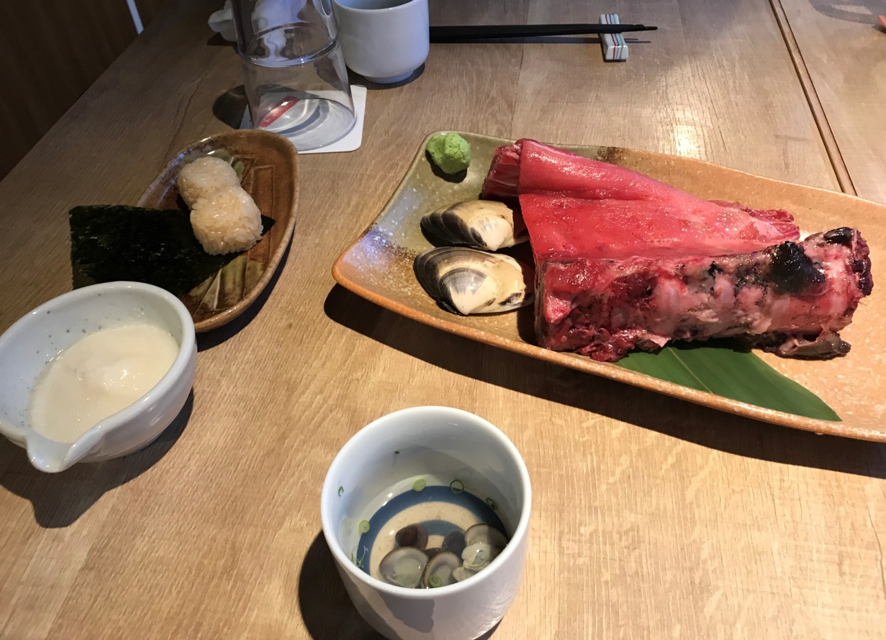 マグロと日本酒が売りのお店です。武蔵小杉駅前にありアクセスは良かったです。刺身に中落ち、カマ焼きとマグロをたくさんいただけました。お通しのシジミ汁は、セルフで飲み放題です。