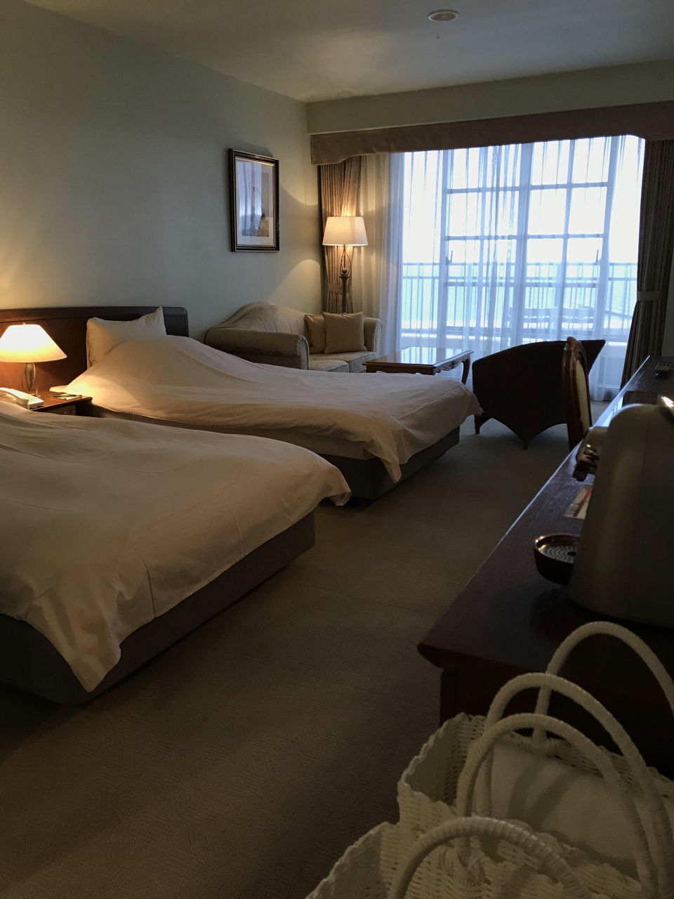 最寄りは真鶴駅で、駅からホテルまでは歩けない距離では無いですが、バスかタクシーの利用がお勧めです。洋館のような素敵な佇まいでした。1泊2食付きで宿泊しました。部屋はオーシャンビューで、相模湾を一望できて、伊豆諸島も見えました。