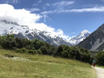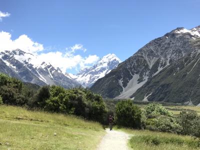 時間の関係で、一部の散策しかできませんでしたが、目の前に迫るマウントクックを見ながら、道端に咲く植物の観察もできて、気持ちの良い散策でした。- 旅行時期