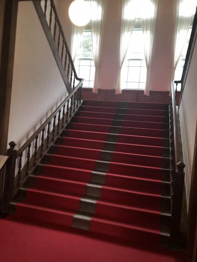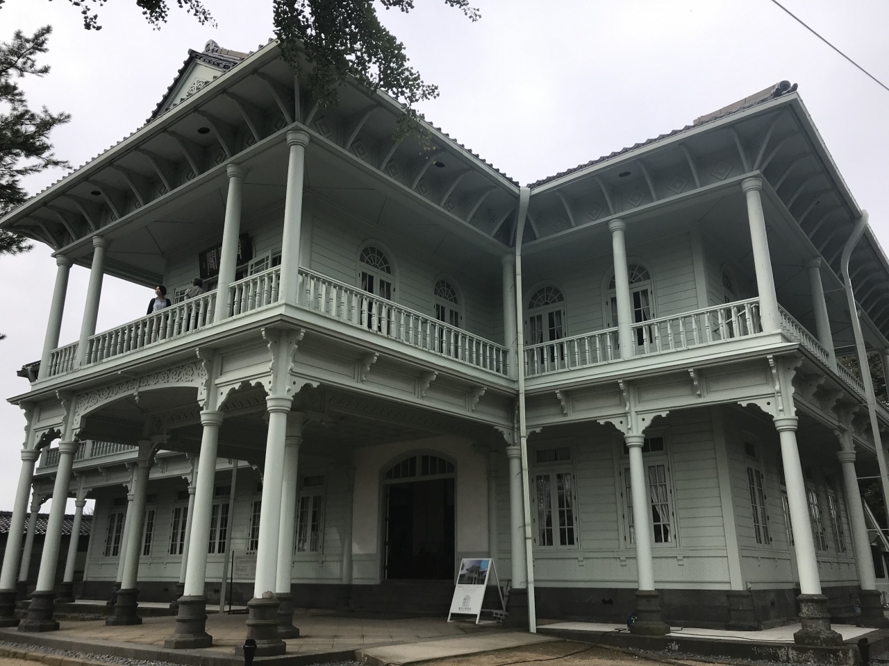 無料で開放されています。松江城の敷地内にあり、隣は松江神社です。和と洋の両者のアンバランス感が逆に良かったです。明治時代に建てられた洋館で、大正天皇が皇太子時代に宿泊したそうです。2階にその貴顕室があり、見学できます。