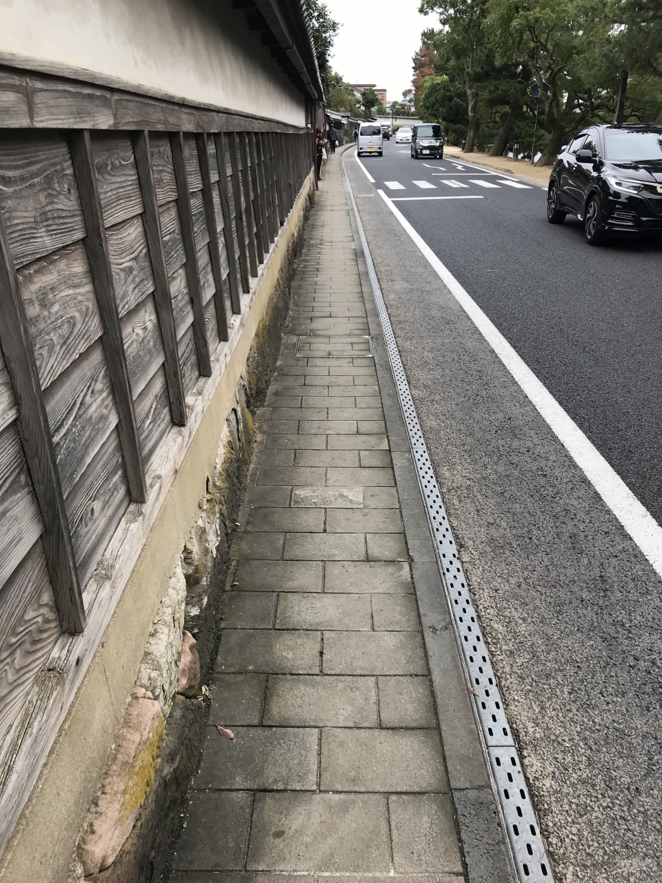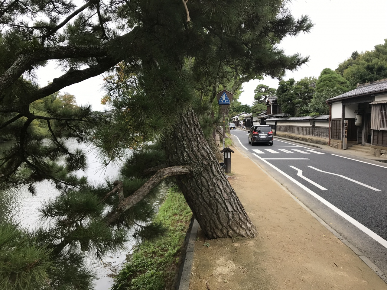松江城の北側にある通りです。「日本の道100選」にも選ばれているそうで、碑がありました。左右にそれぞれ、武家屋敷と堀川沿いの松並木という美しい眺めが楽しめる通りでした。ただ、武家屋敷側の歩道は狭いので散策には注意が必要です。