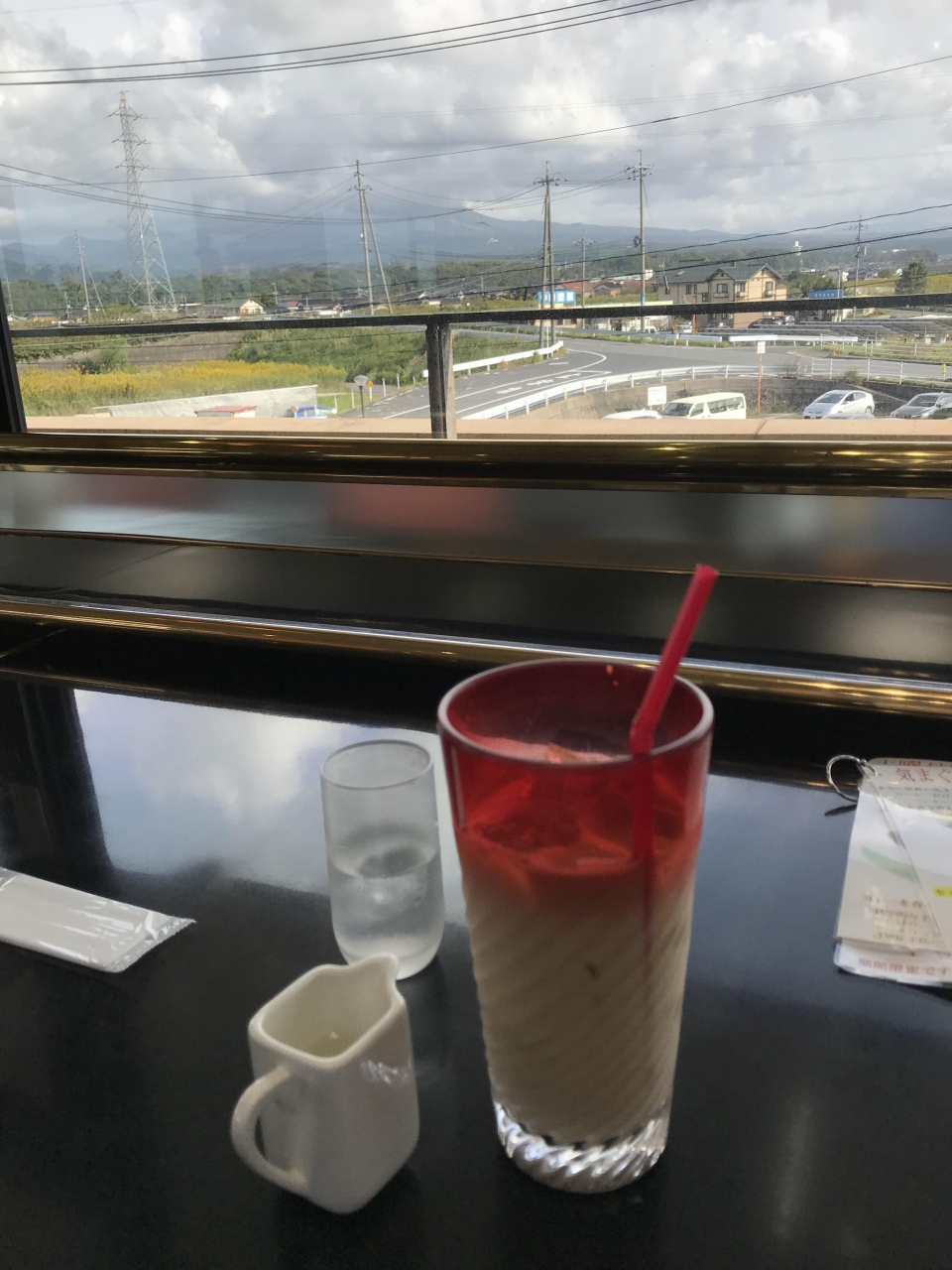 お菓子の壽城内にあり、1階はテイクアウトコーナー、2階が喫茶でした。2階の喫茶を利用しました。店内は広く、窓も大きくて開放的な雰囲気でした。窓際の席からは、天気が良ければ大山が一望できます。