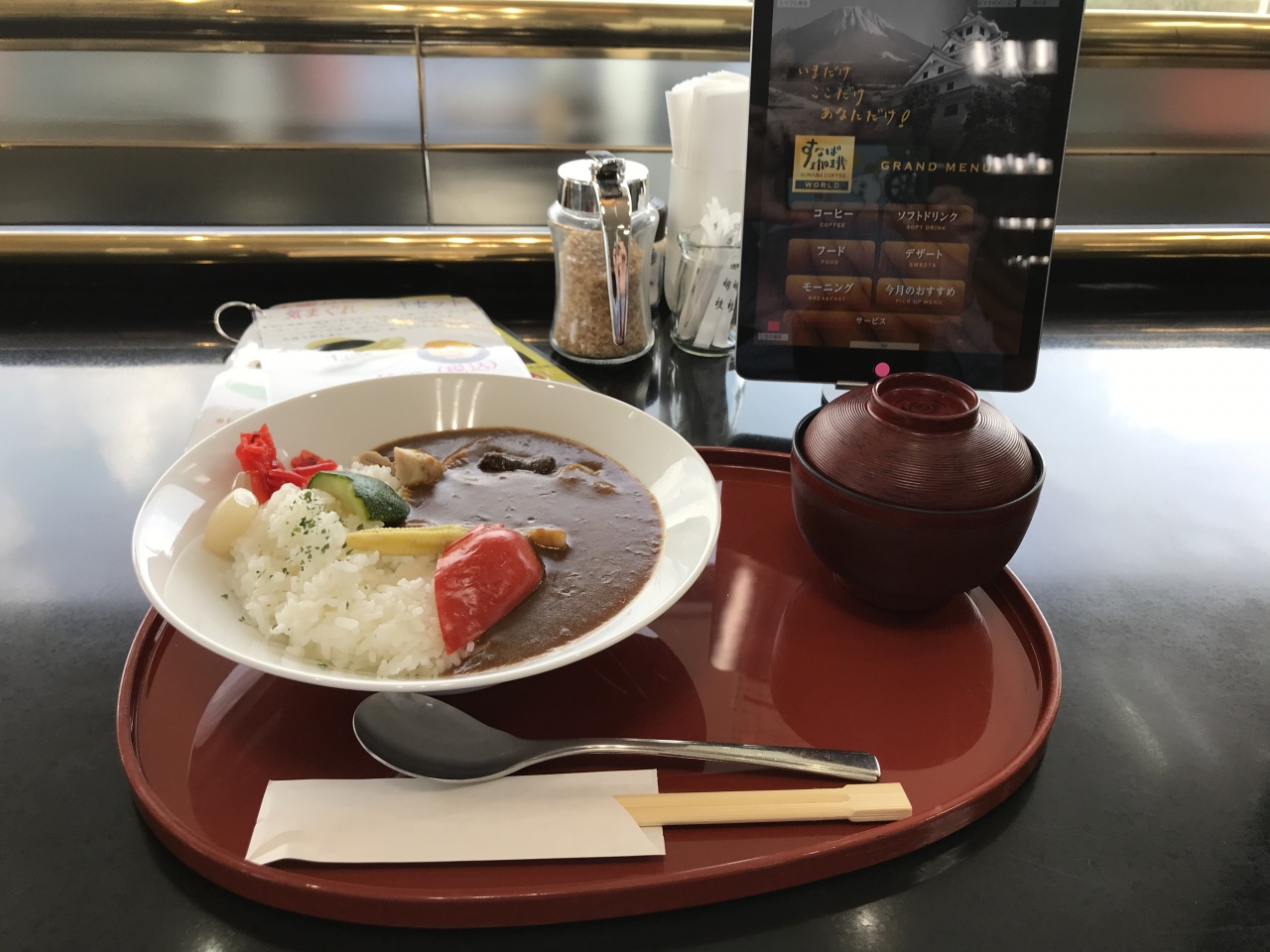 カレーなどの軽食もいただけて、軽食にはコーヒーもセットで付いています。アイスコーヒーはかなりのサイズでビックリしました。- 旅行時期