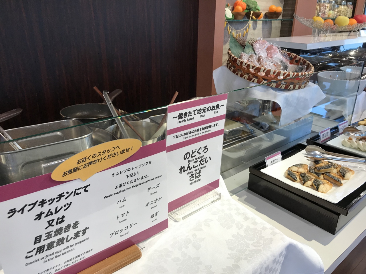 宿泊した際に朝食で利用しました。朝食はビュッフェ形式です。一般的な和洋食に加えて、シジミの佃煮や味噌汁をはじめとした地元の名物がありました。なかでも、地元の魚を焼き立てで提供してもらえたのが特に良かったです。「のどぐろ、れんこだい、さば」の3種がありました。