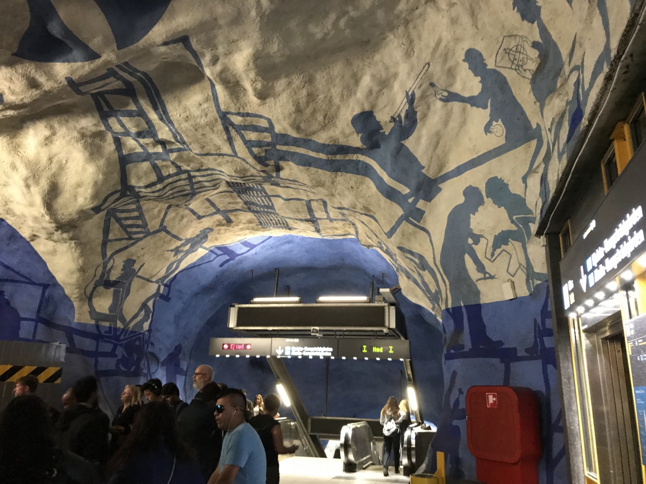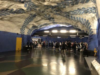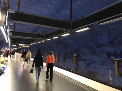 地下鉄の中央駅です。ストックホルム中央駅とは地下で繋がっていますが、少し離れていました。グリーン、レッド、ブルーの全ての路線が通る大きな駅で、特に夕方に利用した際は、とても混雑しました。