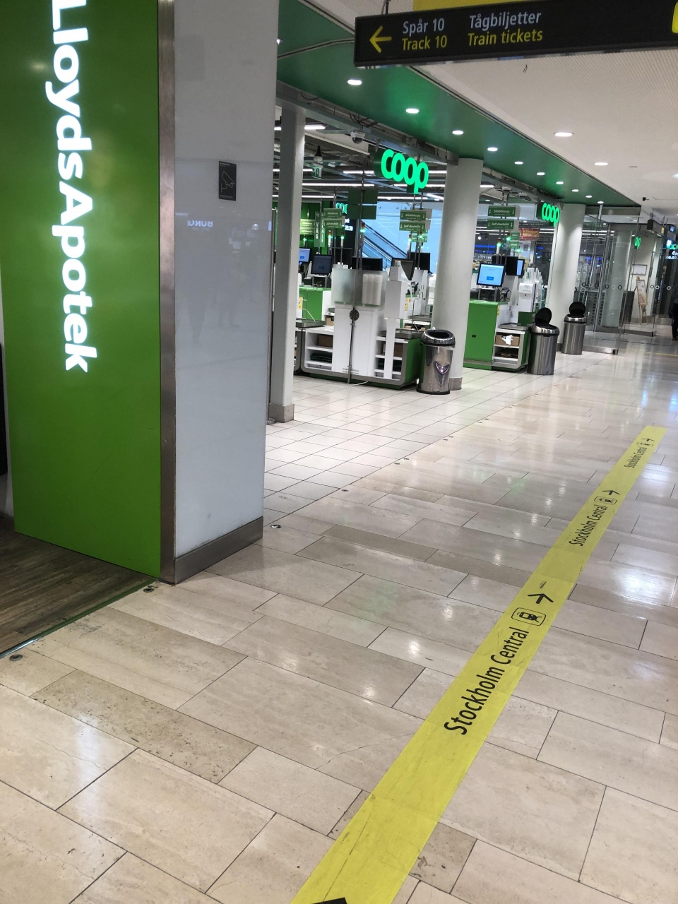 コープは、ストックホルム市内でよく見かけるスーパーです。グリーンが基調のお店です。この店舗は、ストックホルム中央駅と地下鉄のT‐セントラーレン駅を繋ぐ地下道の途中にありました。