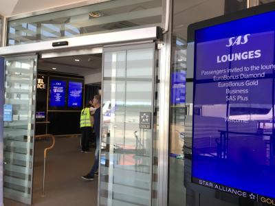 国際線ターミナル5にあるラウンジです。保安検査後の1番ゲート付近にあります。ゲートに搭乗券をかざして入場するシステムでした。SAS LOUNGEとSAS GOLD LOUNGEに分かれていました。