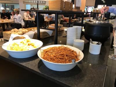 利用時は、かなり混みあっていて、席はなんとか確保しました。料理は、スープ、スナック、パンのほか生野菜もありました。カリフラワーのスープが美味しかったです。- 旅行時期