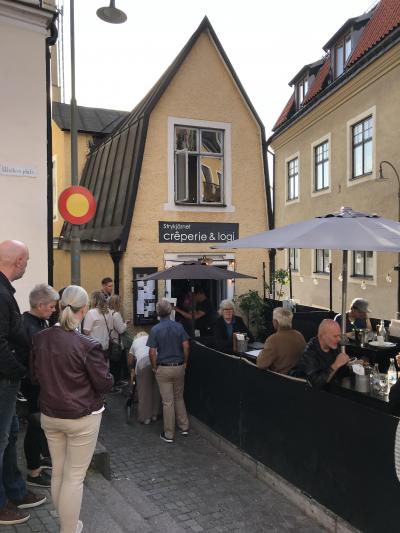 サーモンとほうれん草のガレット(159SEK)を注文、料理のボリュームは結構ありました。お店を出る頃には、結構混んで来たので、場合によっては予約をした方が良いと思います。お店の外観も可愛らしいです。- 旅行時期