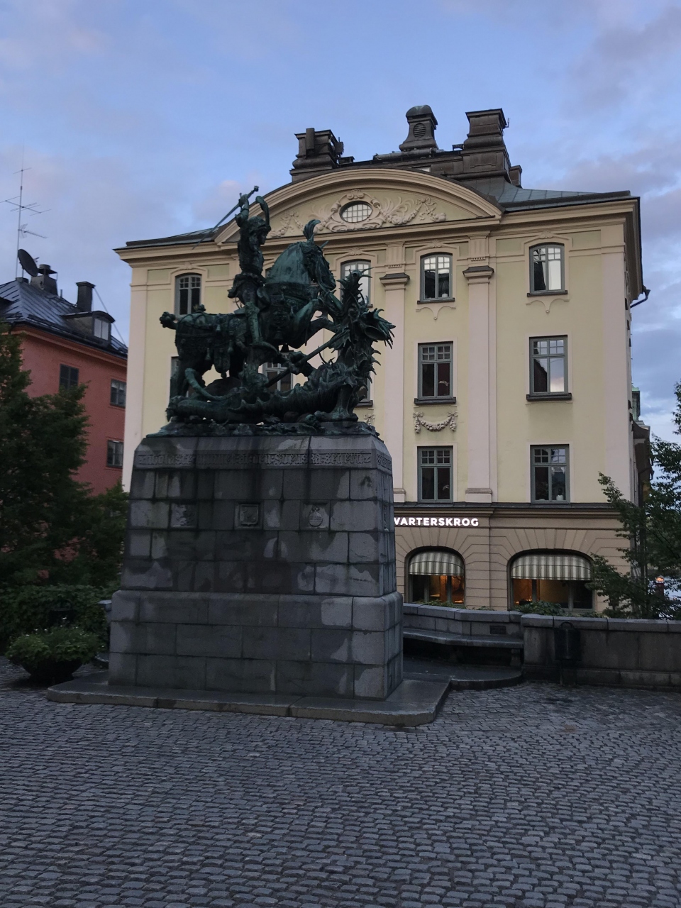 ガムラスタンにある広場で、2つの通りが交わる場所が、三角形の広場になっています。広場には、セントジョージとドラゴン像があり、ランドマーク的存在でした。像の真下には噴水があり、この角度からの眺めも素晴らしいので、広場の下に行ってみるのもお勧めです。