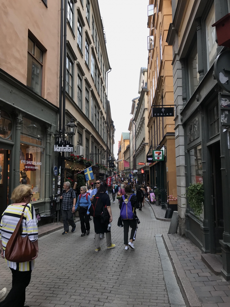 ガムラスタン一の賑やかな通りです。土産物店や飲食店などのショップが並んでいて、見て歩くだけでも楽しい通りでした。人通りも非常に多いです。この通りにある土産物店は、朝の早い時間帯から空いているお店も多く、重宝しました。