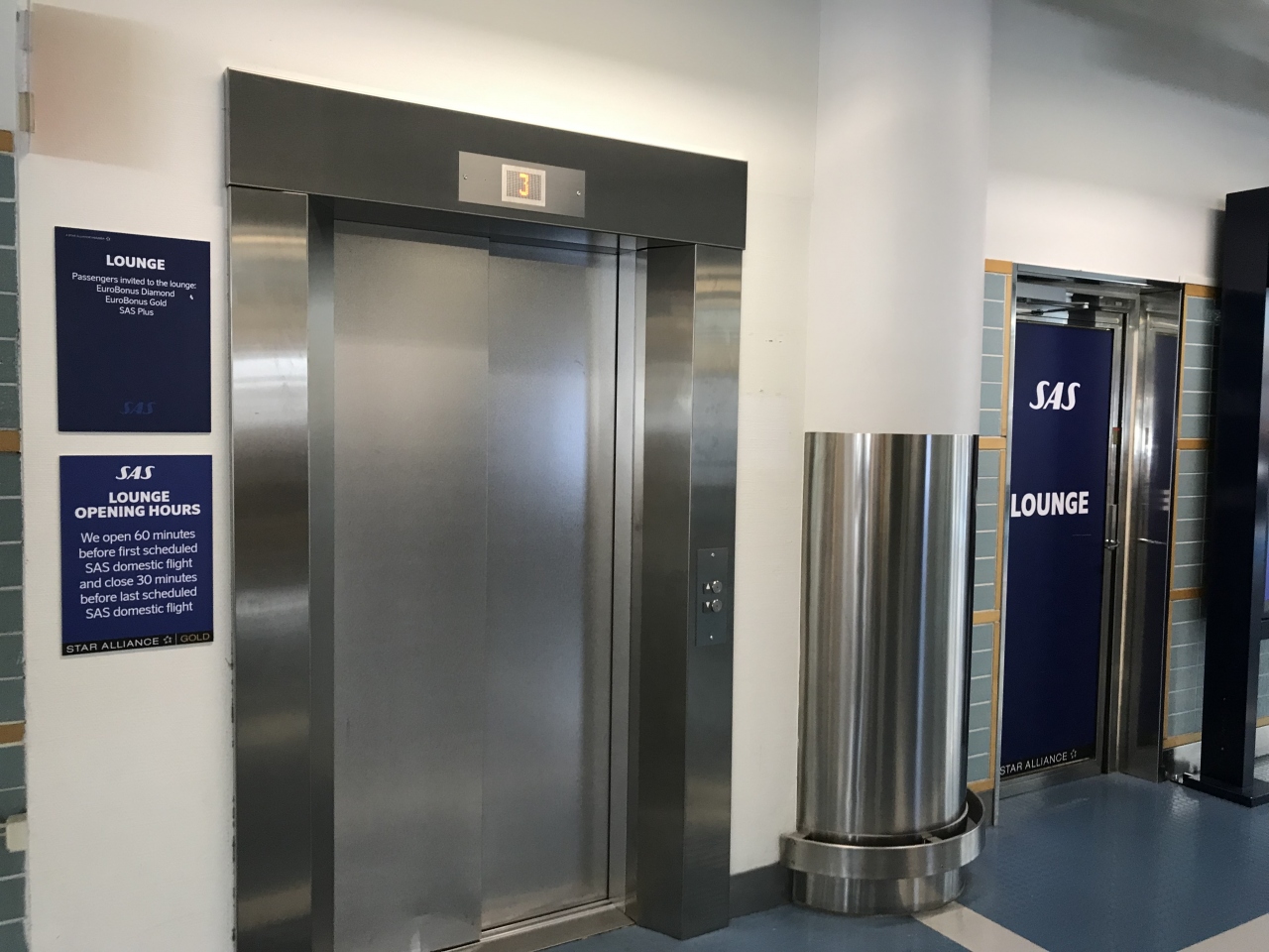ターミナル4にある国内線専用ラウンジです。保安検査後の35番ゲート付近にあります。通路沿いに入口の案内があるものの見落としそうでわかりづらかったです。「SAS LOUNGE」と書かれている扉を開けると階段があり、上に上がったところにラウンジがありました。扉の隣りにあるエレベーターでも同様にラウンジにアクセスできます。