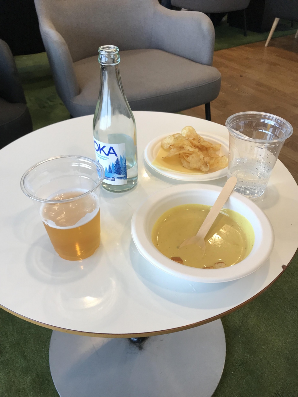 こじんまりとしたラウンジで、料理は、スープ、パンにチーズ、スナックなどとシンプルな品揃えでした。スープはカレー味、ビールは「NORRLANDS GULD」というスウェーデンのビールが置かれていました。- 旅行時期