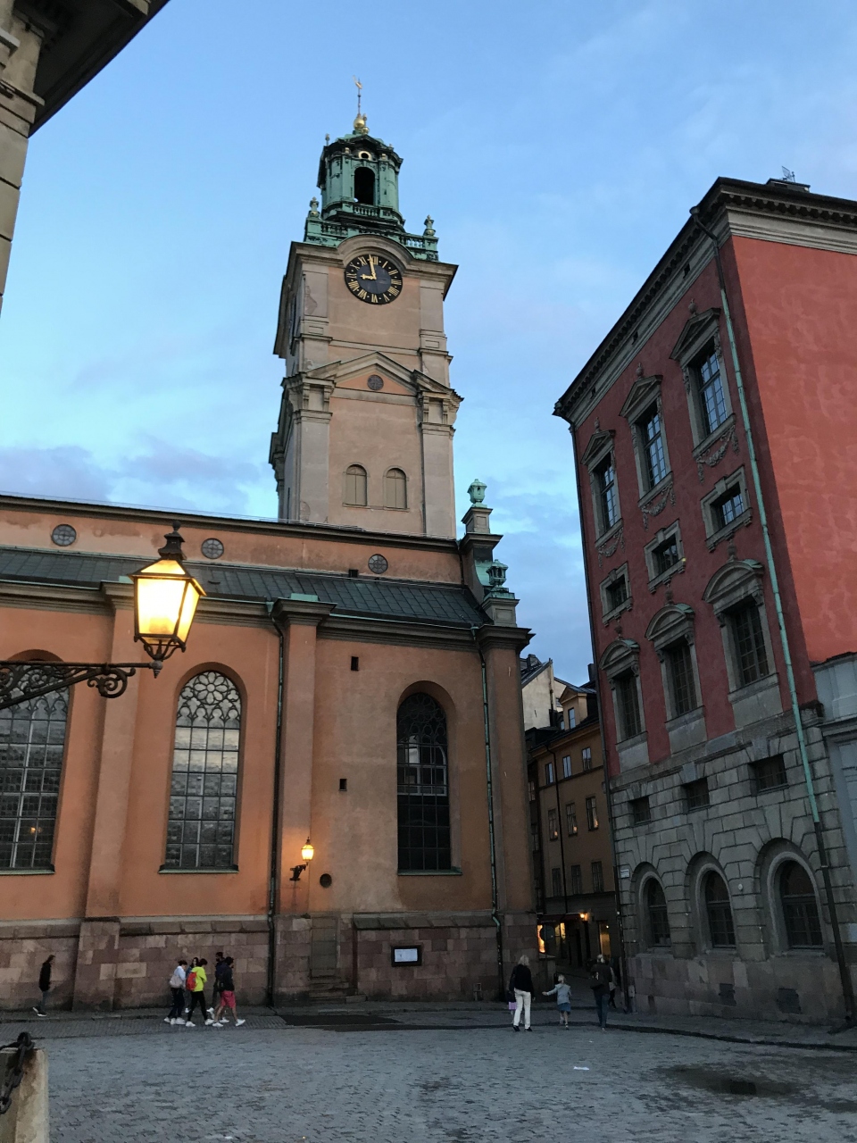 ストックホルム最古の教会で、王室の戴冠式や結婚式もここで行われるそうです。ドイツ教会やリッダーホルム教会と並んで、この3つの塔は、ガムラスタンの象徴になっています。他の2つの教会よりは低いですが、大聖堂は時計塔が見ごたえがあり、存在感も両者に負けていませんでした。