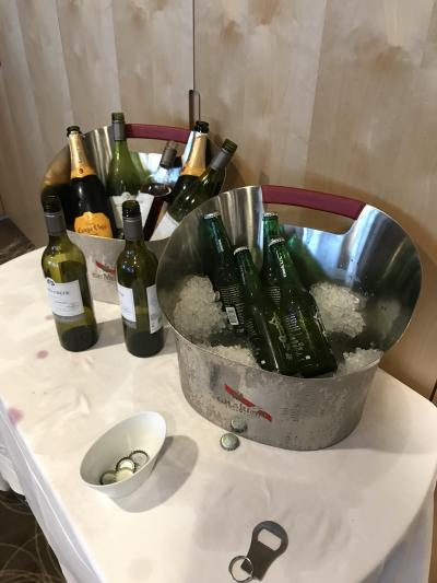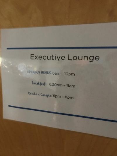 エグゼクティブラウンジは、改装中のため、簡易スペースでの営業でした。営業時間は、午前6時から午後10時までで、アフタヌーンティータイムはありませんでした。アルコールが提供される時間帯(ドリンク&カナッペ)は、かなり混みあいました。