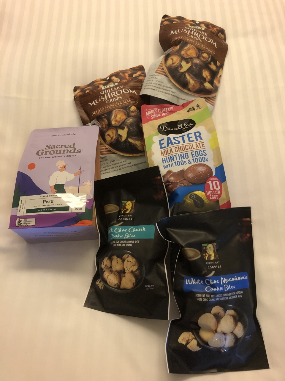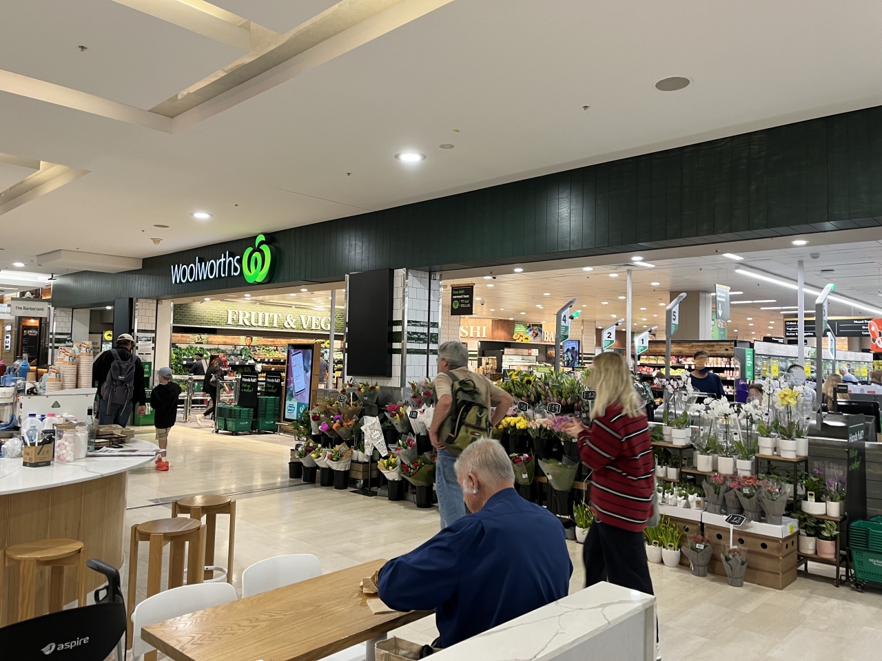ウエストフィールド内に入っています。ウールワースは、地元チェーンのスーパーマーケットで、タウンホール前にも支店があります。タウンホール店に比べると、郊外型の店舗で広くて品揃えが良かったです。シイタケマッシュルームクリスプもあったので、お土産にしました。