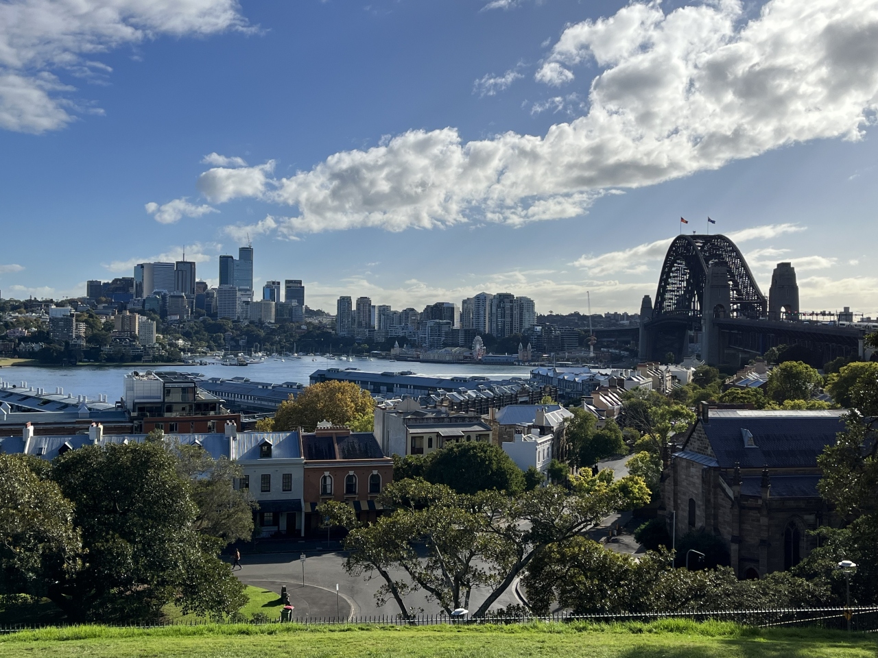 ロックス地区からアーガイルカットのトンネルを抜けて、坂道を上ると、シドニー天文台があります。天文台周辺が、シドニー湾を見渡せる眺めの良い公園になっています。ここから見るハーバーブリッジやロックスの街並みが美しく、眺めの良いお勧めスポットです。