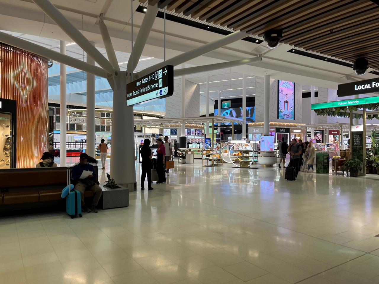 出国審査は、入国時と同じくスマートゲートを使う無人システムでスムーズでした。出国審査後、手荷物検査があります。免税店エリアは広く充実しており、品揃えが良いので、買い忘れたものがあっても、大体のものはこちらで購入できると思います。値段も市内と変わらなかったです。