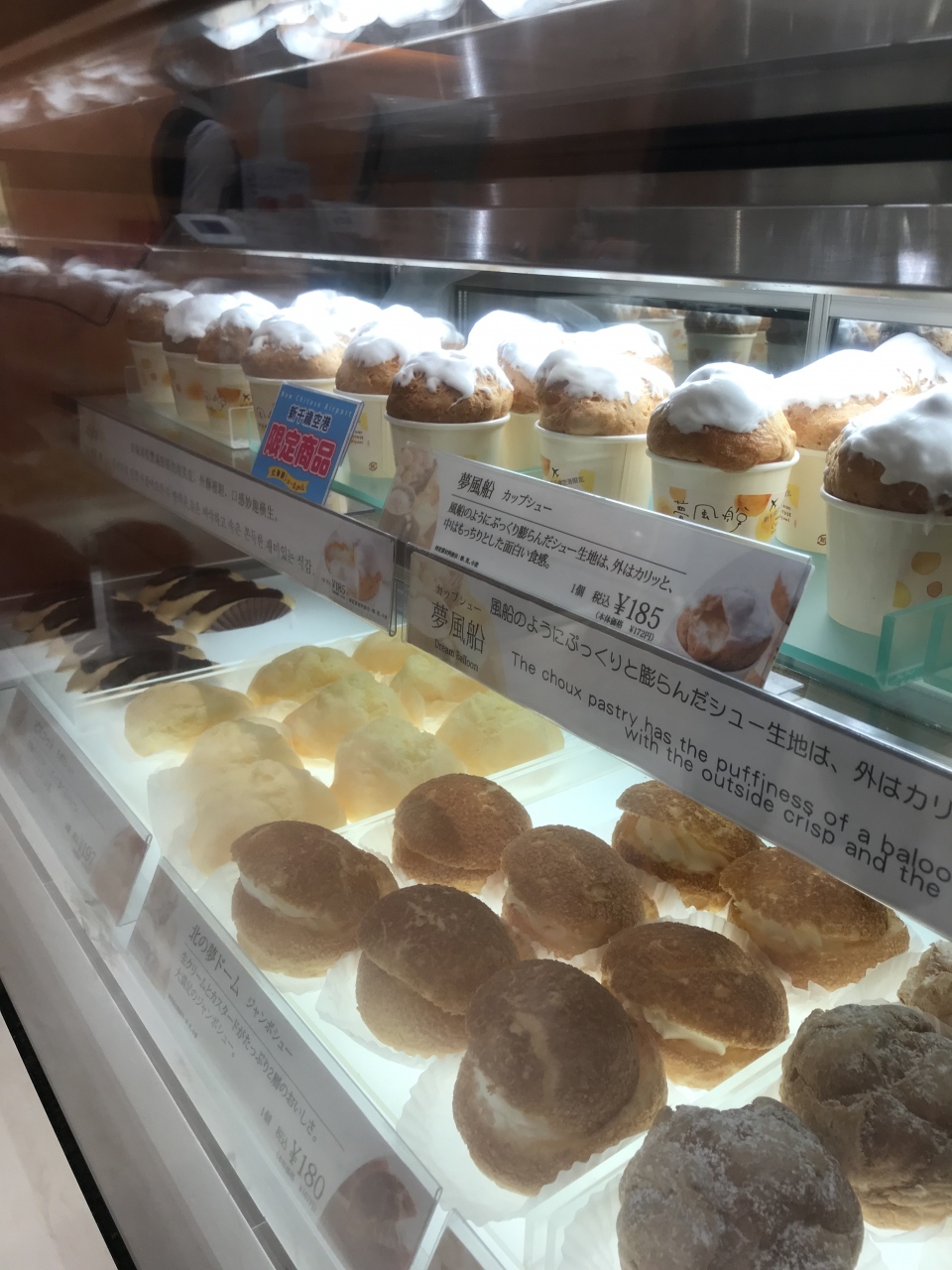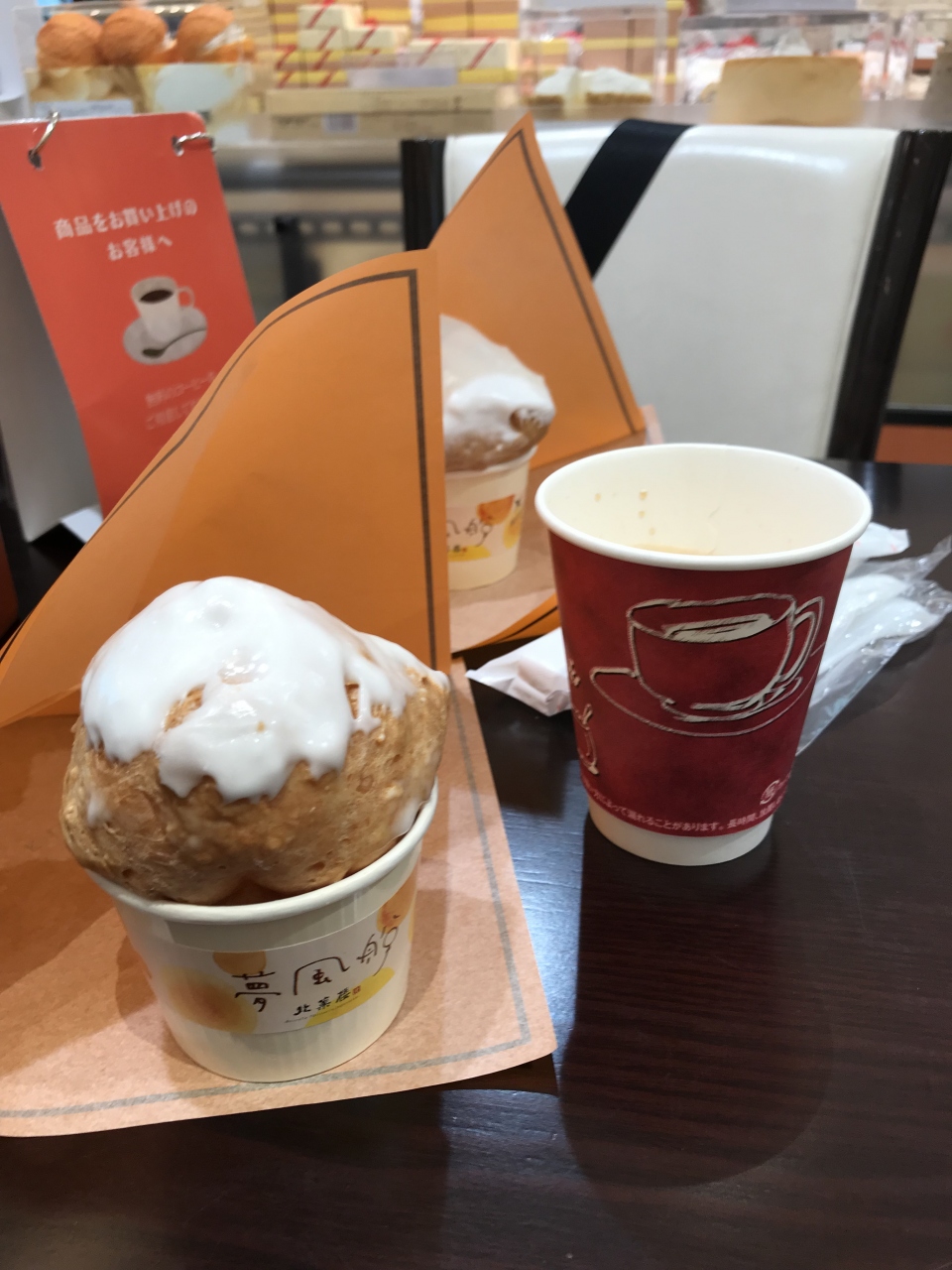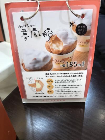 新千歳空港内にあり、いつもたくさんの人で賑わっています。小さいですが、店内にイートインコーナーがあります。定番商品はもちろん、店舗限定商品として「夢風船」というカップシュークリームがあったので、店内でいただきました。クリームの味だけでなく、生地の食感も楽しめるシュークリームでした。商品を購入すると、無料コーヒーのサービスもあります。