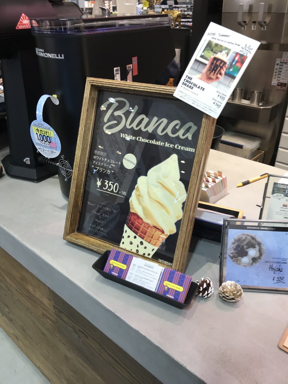 ステラプレイスの地下一階です。衣料品店や雑貨店に囲まれた一角にありました。コーヒーやソフトクリームがいただけるカフェで、オリジナルチョコレートも販売されていました。