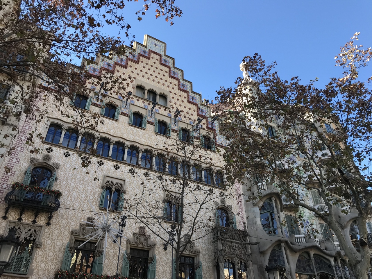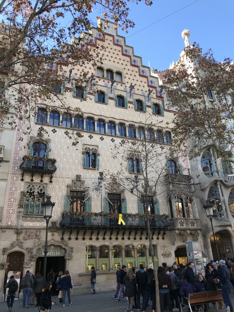 カサ・バトリョの向かって左隣にある建物です。切り妻屋根が特徴的な建物で、ドイツやオランダを想起させる建物でした。屋根だけでなく、壁の模様やタイルなども可愛らしかったです。現在は、チョコレート屋さんになっています。