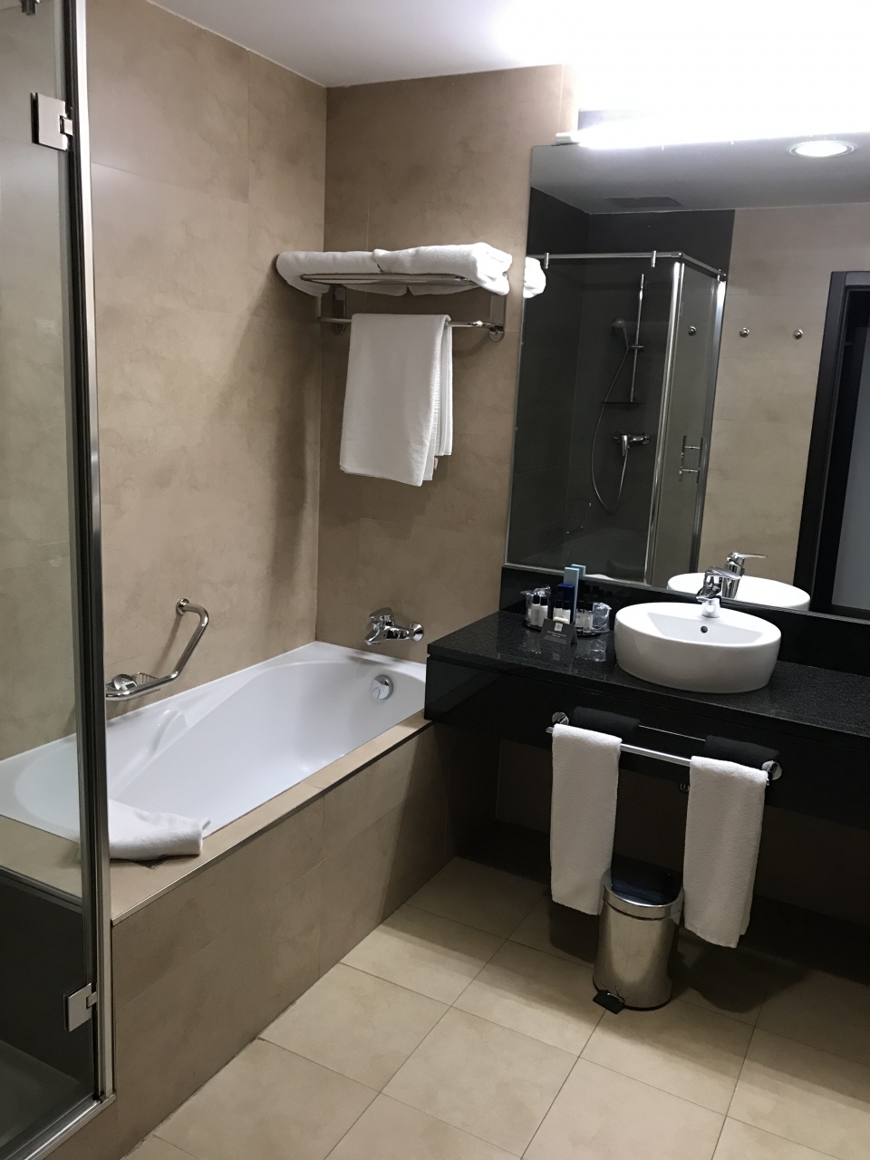 バスローブ、スリッパは無かったです。バスルームは、シャワーブースとバスタブが別々にあったので使いやすかったです。