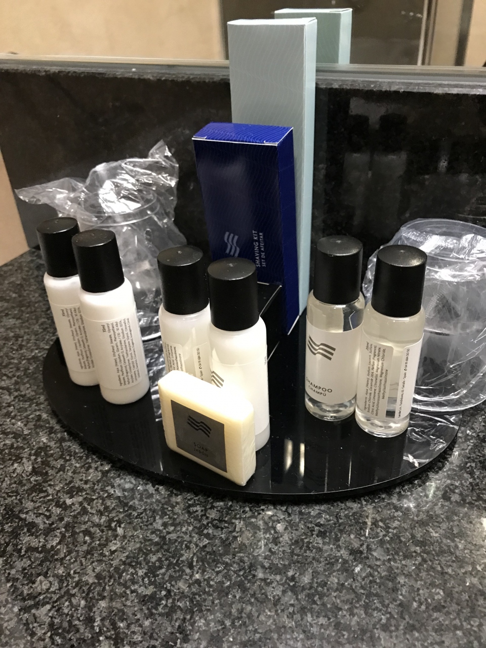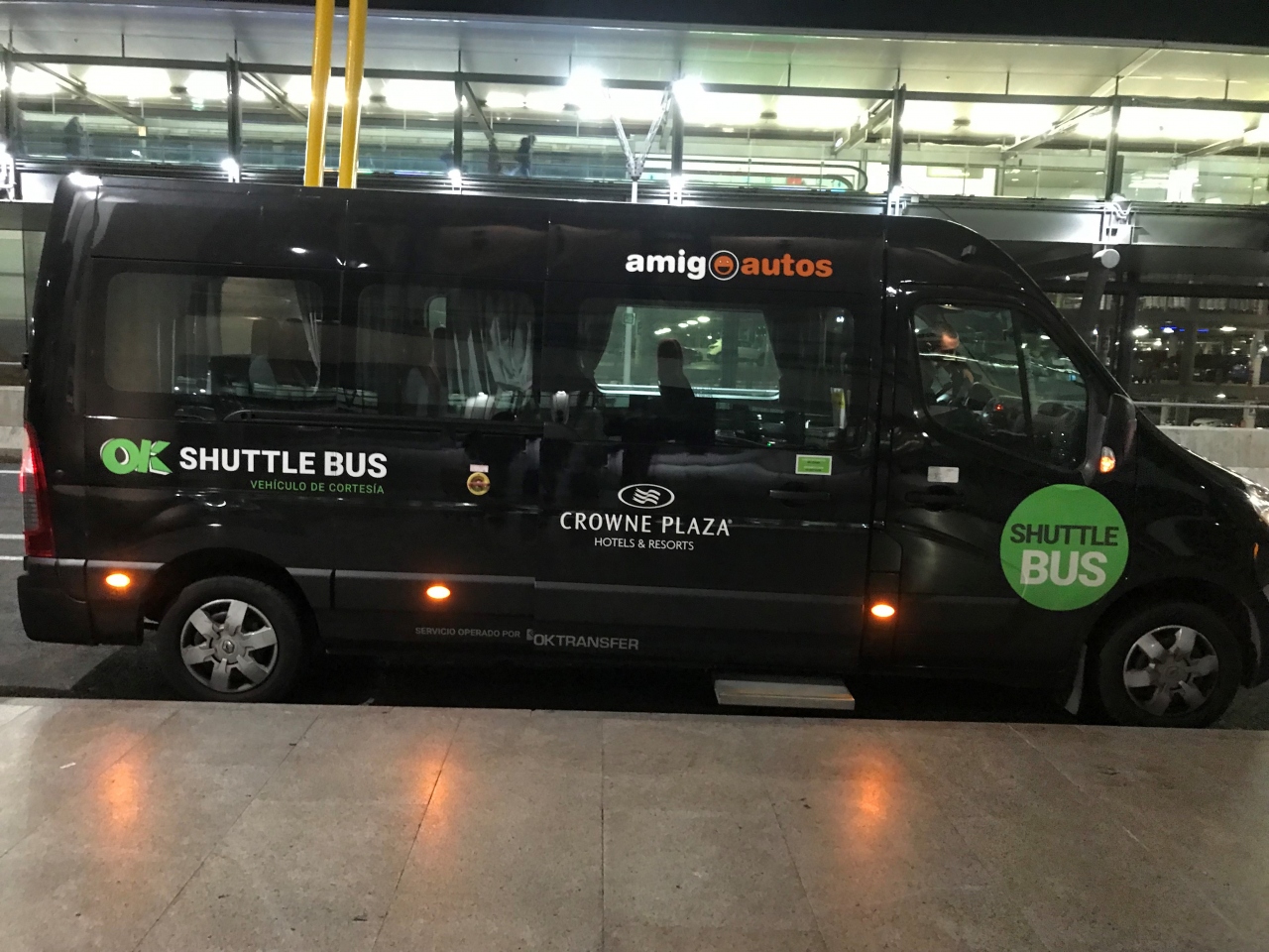 空港からホテルまでは、バスで10分ほどでした。ホテル周辺には何もありません。ホテル内にレストランがあり、ピザなどがメニューにありました。サンドイッチやスナックを販売する自販機もありました。