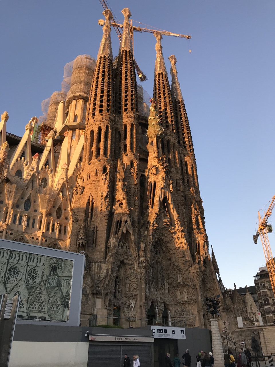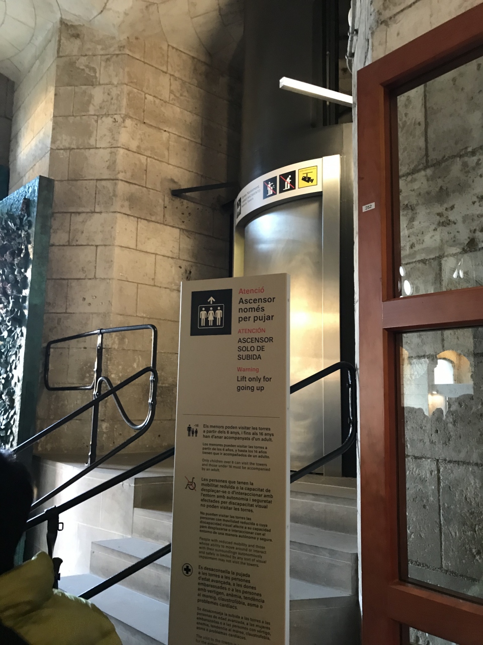 ネットで事前に朝一番(9:00)の時間を予約しておきました。チケットは、教会内部と塔の入場ができるチケットを購入しました。32ユーロでした。日本語オーディオガイド付きです。塔は生誕のファサードか受難のファサードかを購入時に選択します。
