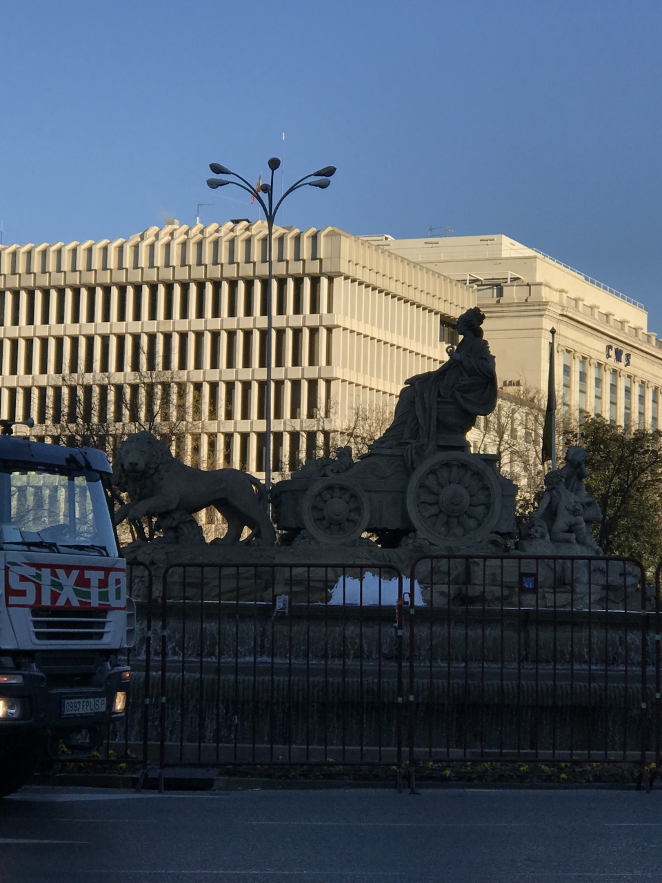 アルカラ通り、プラド通りなどの大きな通りが交差していて、非常に交通量が多い広場でした。中央には、シベーレスの噴水があります。広場の四方には、シベーレス宮殿やスペイン銀行などの歴史的な建築物が固まっており、見所のある場所だと思います。