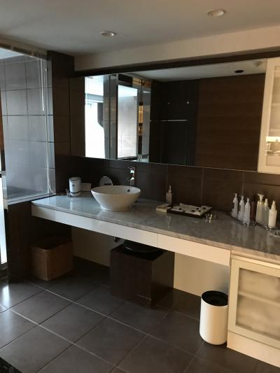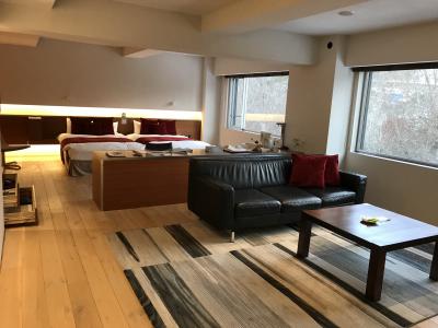 客室は、全室、温泉付きのスイートルームになります。部屋は70㎡あるので、とても広々としていました。アメニティも、数種類あるブランドの中から好きなものを利用することができます。