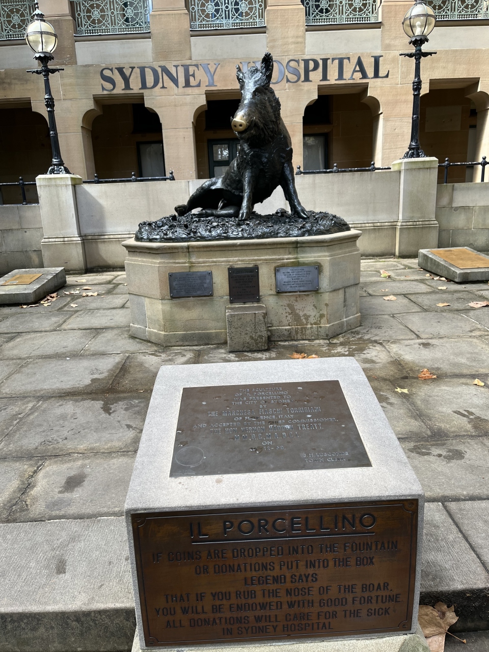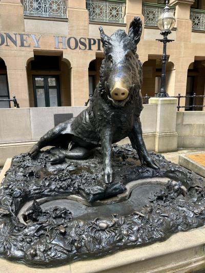 シドニーホスピタル前に設置されています。マクアリーストリート沿いです。像を見て、フィレンチェにも、同じような像があったのを思い出しました。それもそのはず、オリジナルがフィレンチェにあるもので、こちらはそのレプリカなのだとか。鼻を触ると幸せになると言う言い伝えがあり、鼻の部分だけ色が変わっていました。