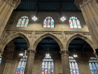 タウンホールの隣にある教会です。内部の見学もできて、ステンドグラスが美しかったです。中心部にありながら、そこまで観光客は多くなく、ゆっくりと見学することができました。ネオゴシック様式で外観も見事ですが、周辺の木々が邪魔をして、綺麗に全体が見えないのが残念でした。