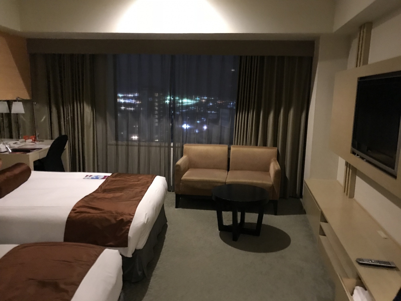 部屋は、予約時にみなとみらいの夜景を一望できるシティビューと横浜ベイブリッジを一望できるベイビューを選択できたので、シティビューを選択しました。