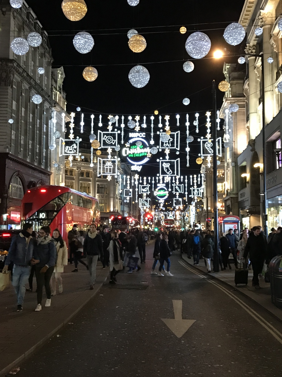 また、リージェントストリートも、オックスフォードストリート同様、クリスマスイルミネーションが綺麗です。