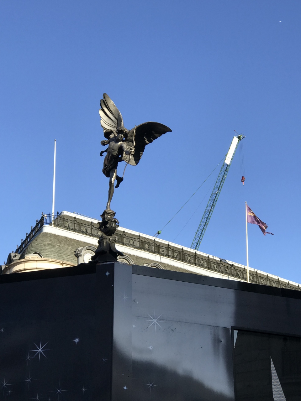 ピカデリーサーカスは、劇場などが集中する地域で、広場の象徴とも言えるものが、中央にある噴水です。