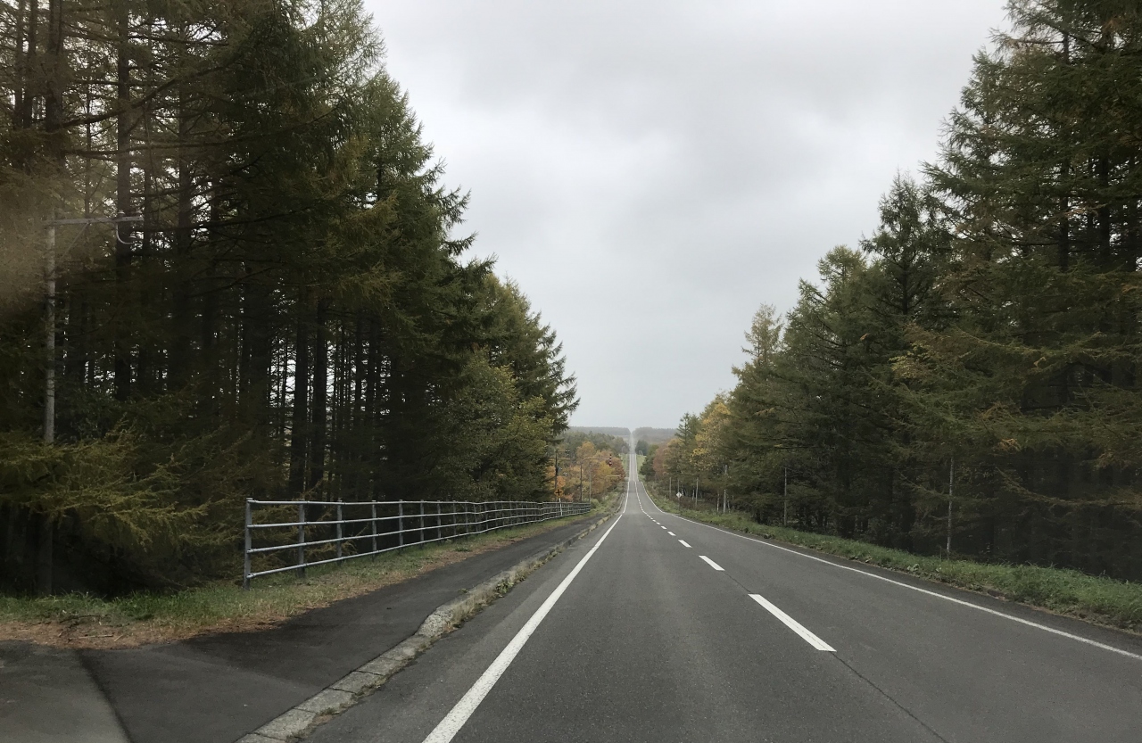 カラマツの防風林が、格子状に碁盤の目のように並んでいるものです。