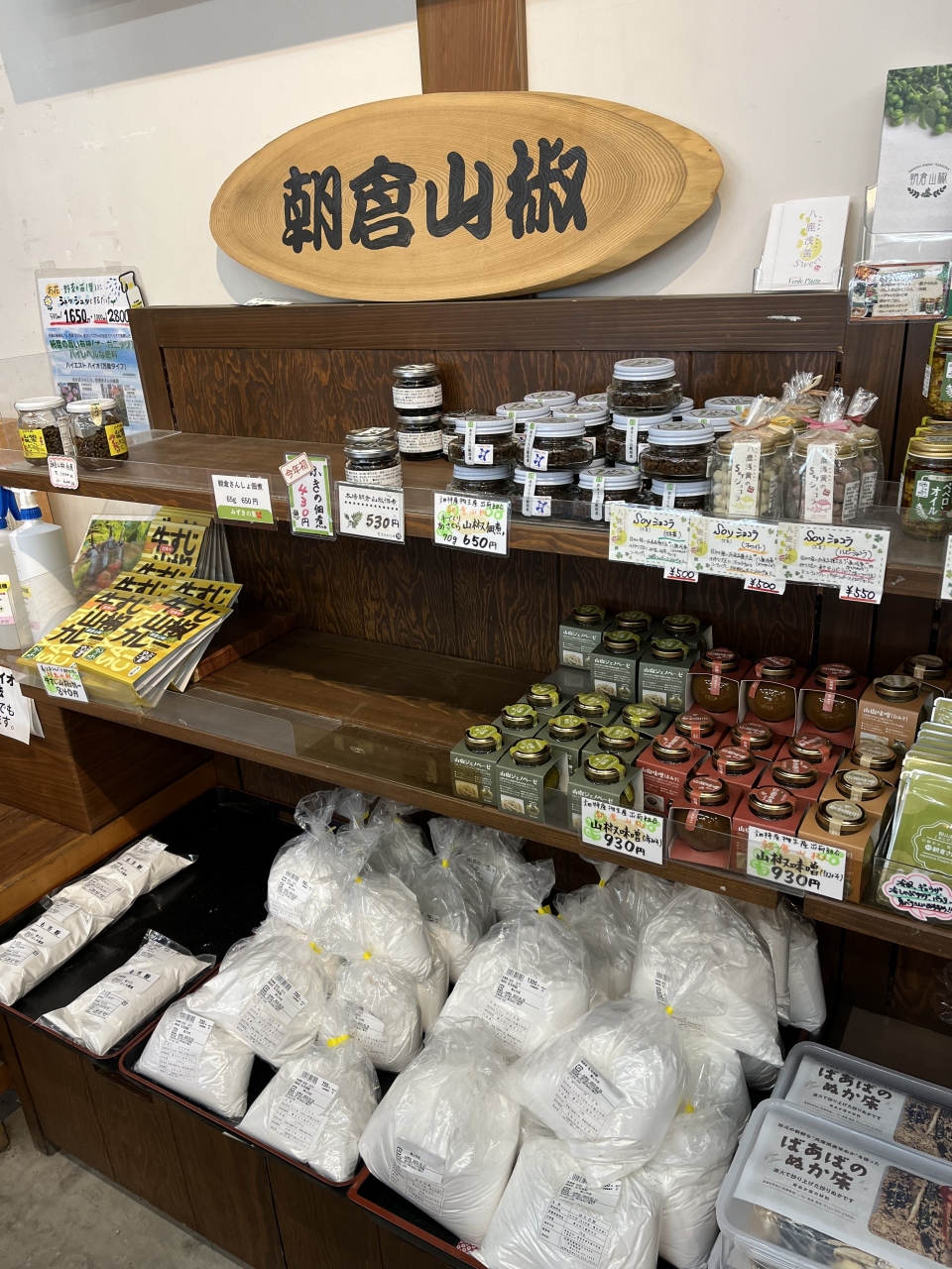 大きくて綺麗な道の駅です。「朝倉山椒」という山椒が特産品で、売店で売られていました。朝倉山椒を使った料理は道の駅内にあるレストランでもいただけます。このほか、レストランでは「八鹿豚」という地元のブランド豚を使った料理もあって美味しかったです。