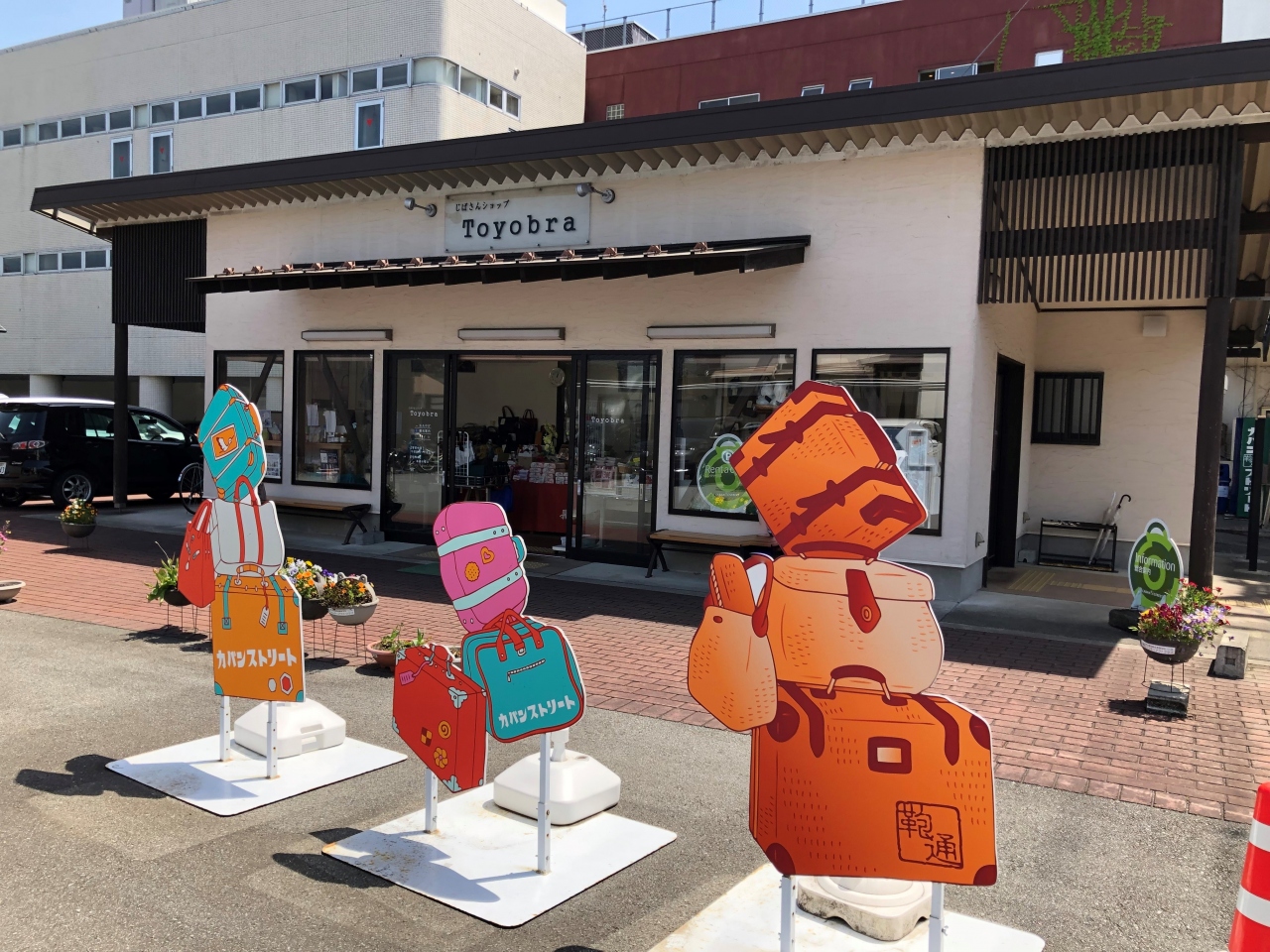 豊岡と言えば、豊岡鞄で有名です。市内のあちこちに鞄店がありますが、このカバンストリートには、通りの両脇にズラリと鞄店が並んでいます。鞄店以外もありますが、およそ半数が鞄店となっていました。通りの中間には、観光案内所も兼ねる「豊岡まちなかステーション」もあり、立ち寄るのがお勧めです。