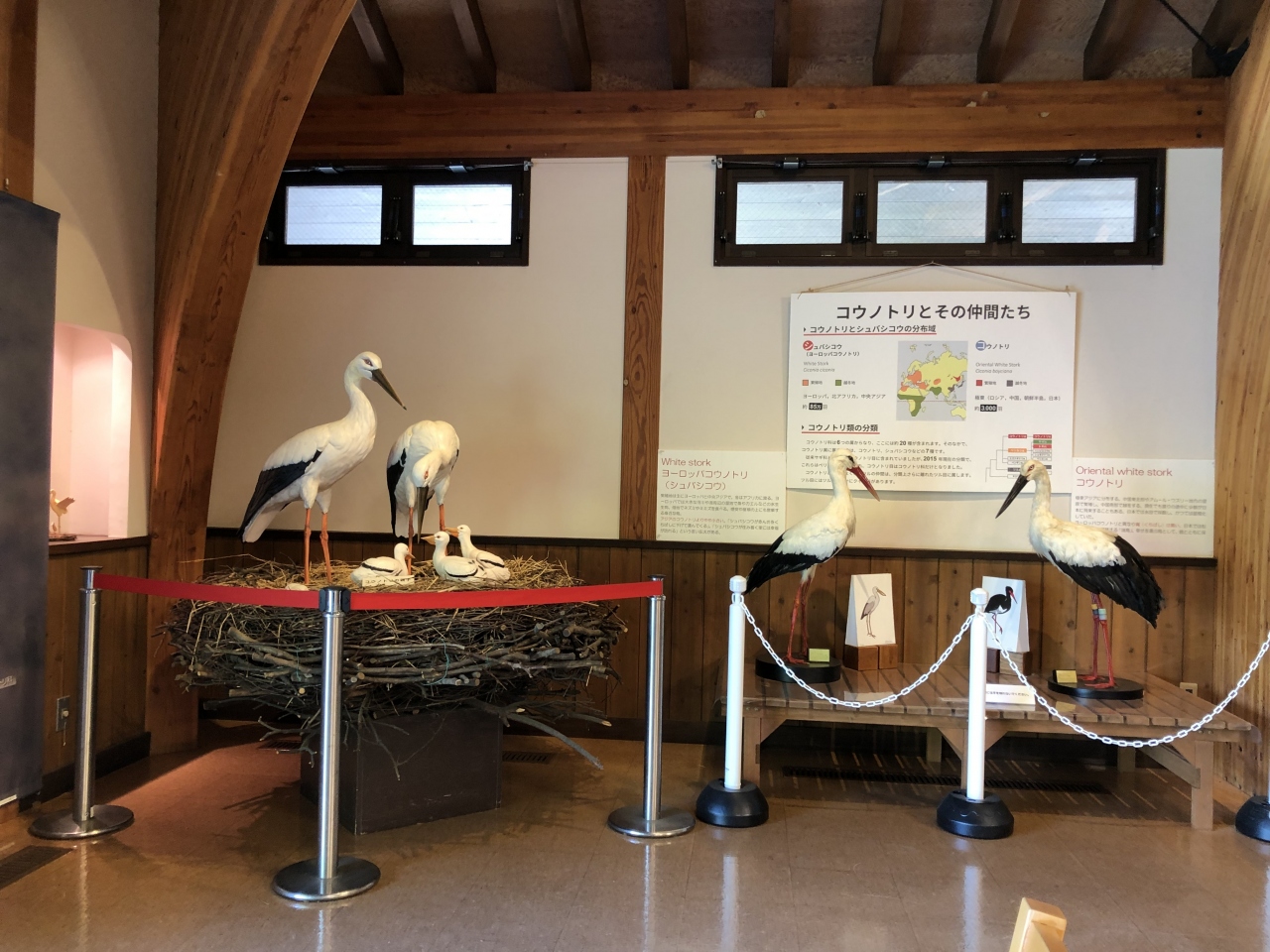 屋外で飼育されているコウノトリを見られます。飼育されているコウノトリは思ったよりも少なかったですが、間近でコウノトリを見られて貴重でした。また、「コウノトリ文化館」という施設もあり、コウノトリに関する展示や解説員による説明が聞けました。