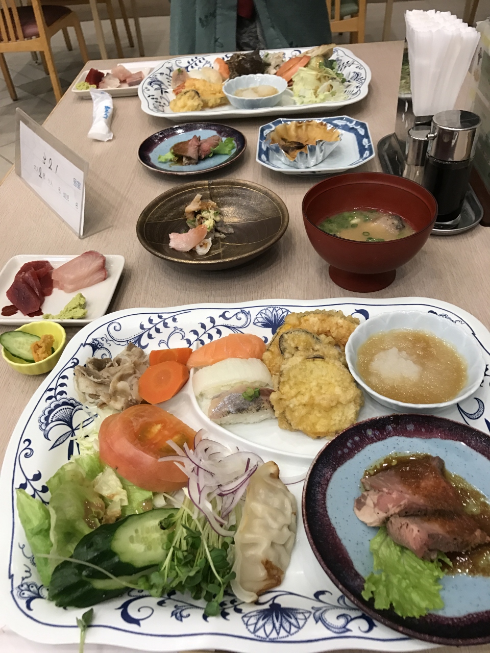 夕食は,種類豊富なバイキングで,飲み放題もリーズナブルなので,つけている方が多いようでした。