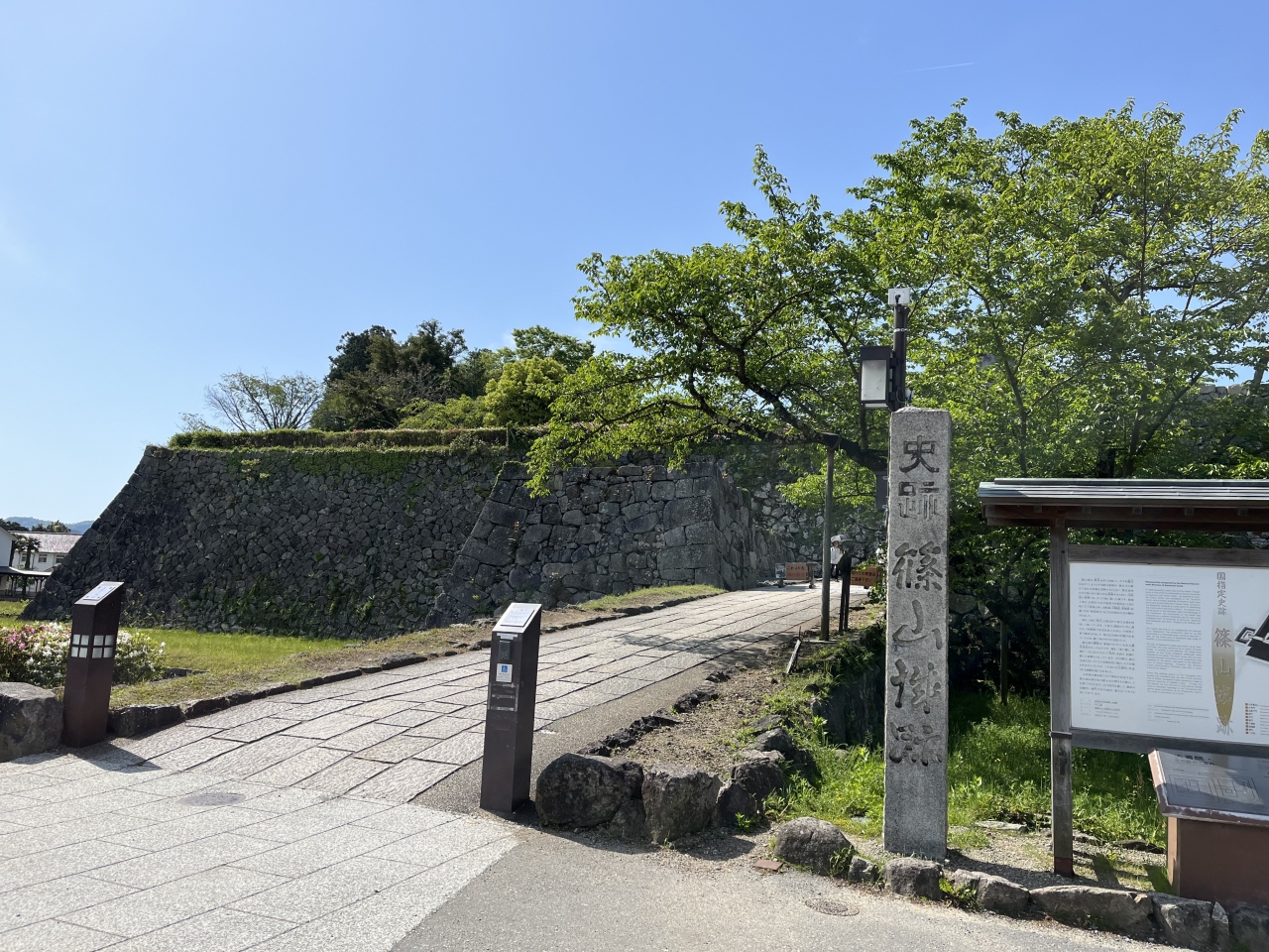日本100名城の一つです。徳川家康が、豊臣氏との戦いを見据えて築いた城とのことです。天守は作られず、その代わりに政治の中心となったのが大書院です。大書院は、戦前に焼失したものの、2000年に再建されて、篠山城跡の中核となっています。平屋建てで、建物だけ見ると、一般的な城というイメージからは少し違いました。内部は公開されていて、再現された広間などが見られ、当時の様子を偲ぶことができます。