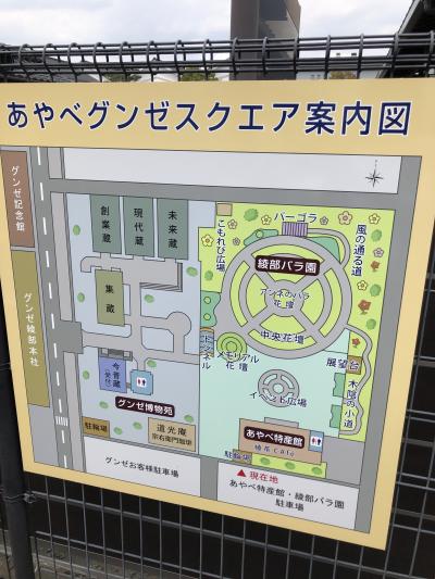 綾部市はグンゼ発祥の地だそうで、グンゼの博物館がありました。博物館を中心に、物産館やバラ園もあり、全て入園料無料で自由に見学できます。バラ園では、バラの見頃は、もう少し先でしたが、その他にもいろいろな花が見られて綺麗でした。