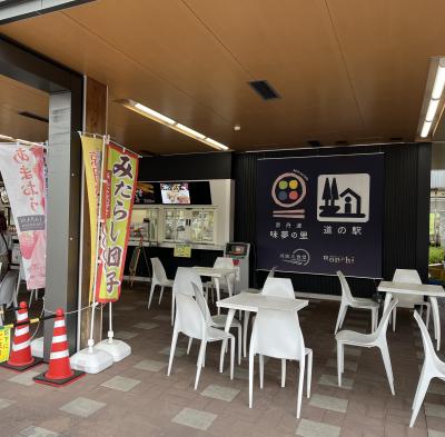 高速道路のパーキングエリアになっており、広くて充実した道の駅でした。一般道からもアクセスできます。お土産や野菜が購入できるマルシェは、品揃えが良く、営業も早朝6時から営業していて便利です。レストランは2店舗入っているほか、オープンカフェエリアもあるので、食事の選択肢も広くて良いです。