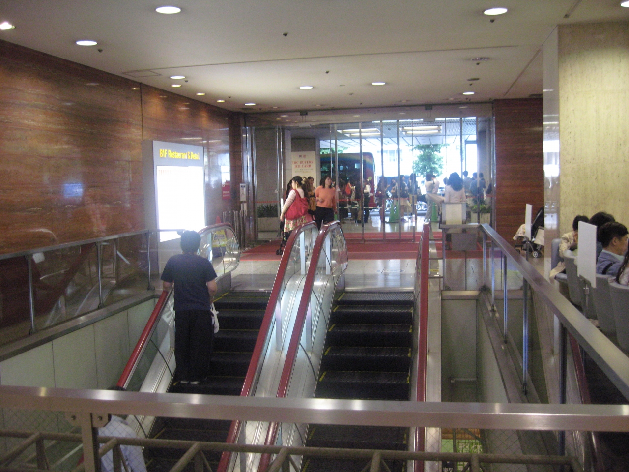 エスカレーターで上に上がると,周りは鏡張りで,万華鏡のようになっています。