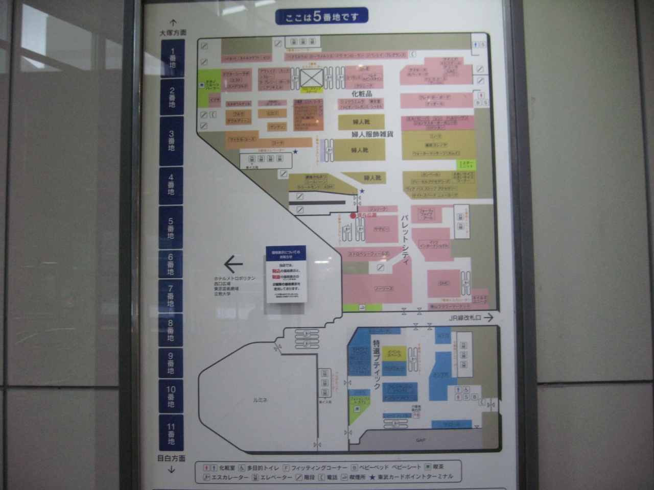 売場が1~11番地に分かれているのですが,案内板には,「大塚方面」,「目白方面」と山手線の駅名が記載されていて,大きな百貨店でありながら,庶民的な雰囲気を感じました。- 旅行時期