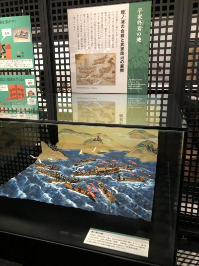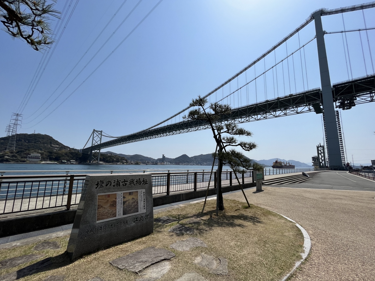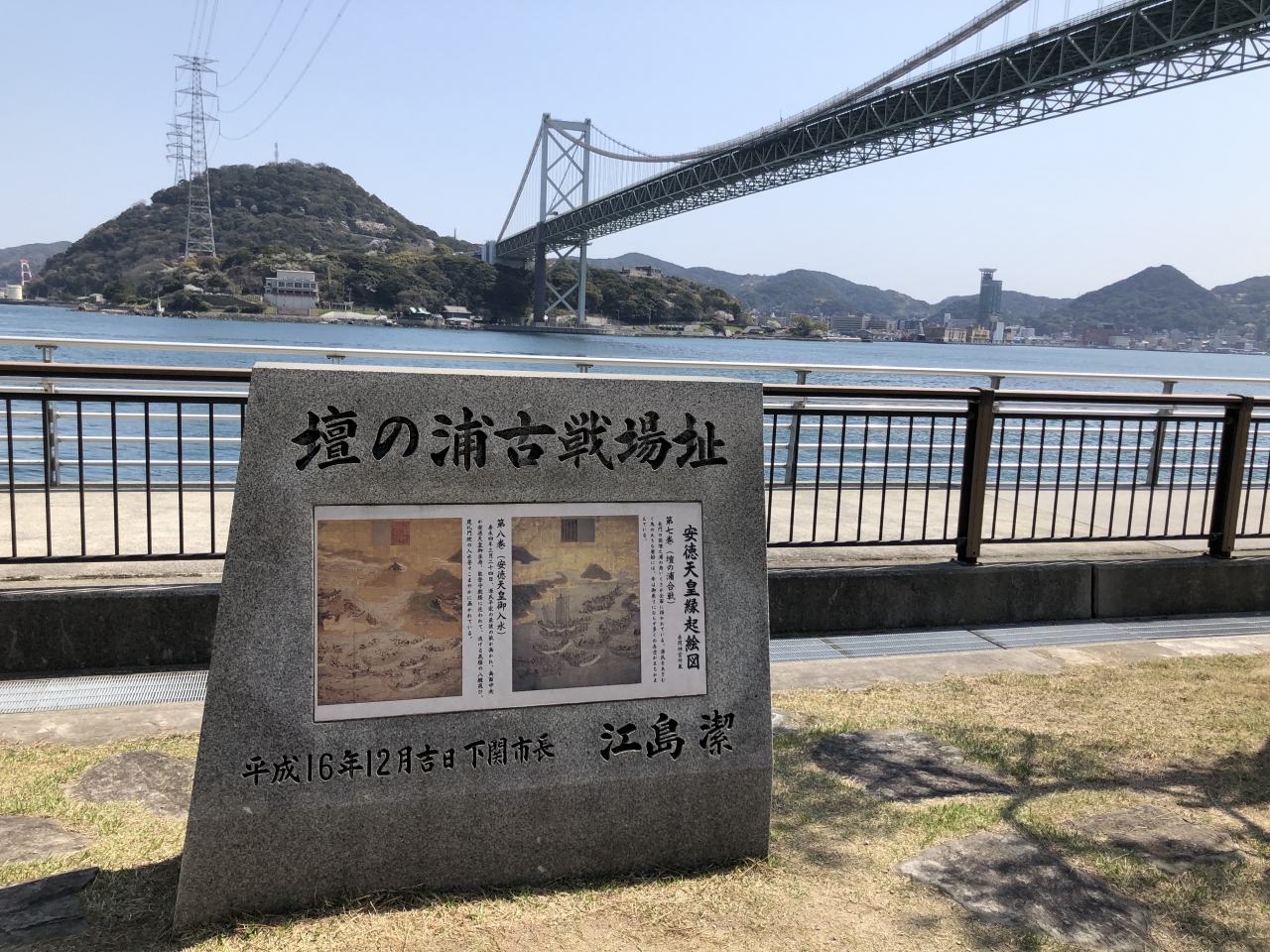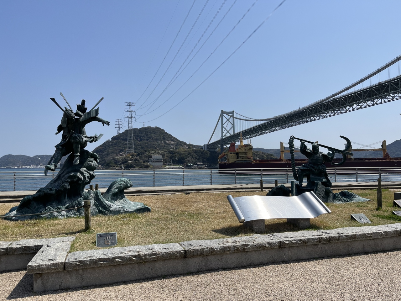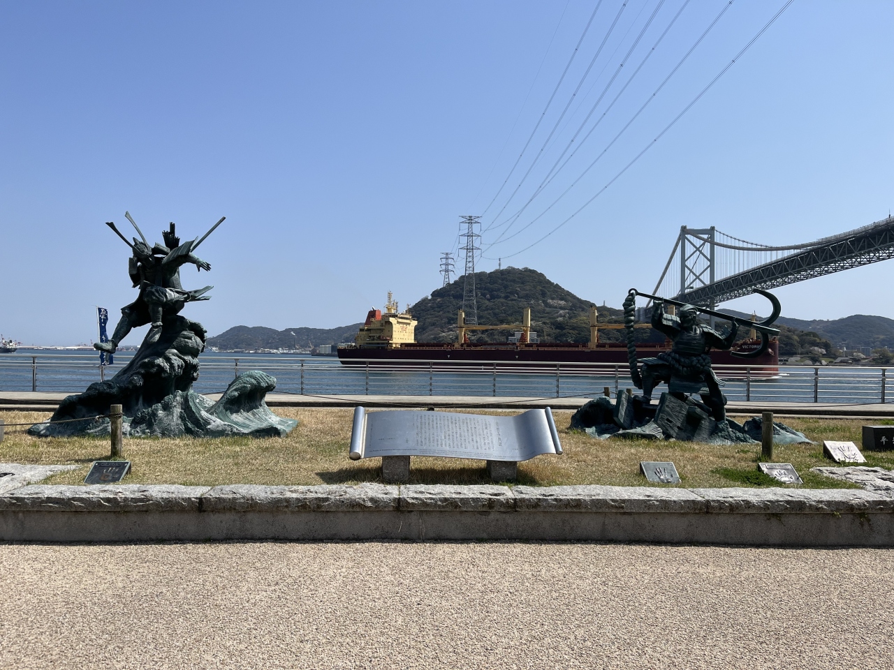 関門海峡は、源平最後の戦いとなった「壇ノ浦の戦い」の舞台となった場所です。その関門海峡を臨む場所に「壇ノ浦古戦場跡」がありました。下関側です。源義経と平知盛の像も設置されていて、関門海峡をバックに、当時に思いを馳せることができます。